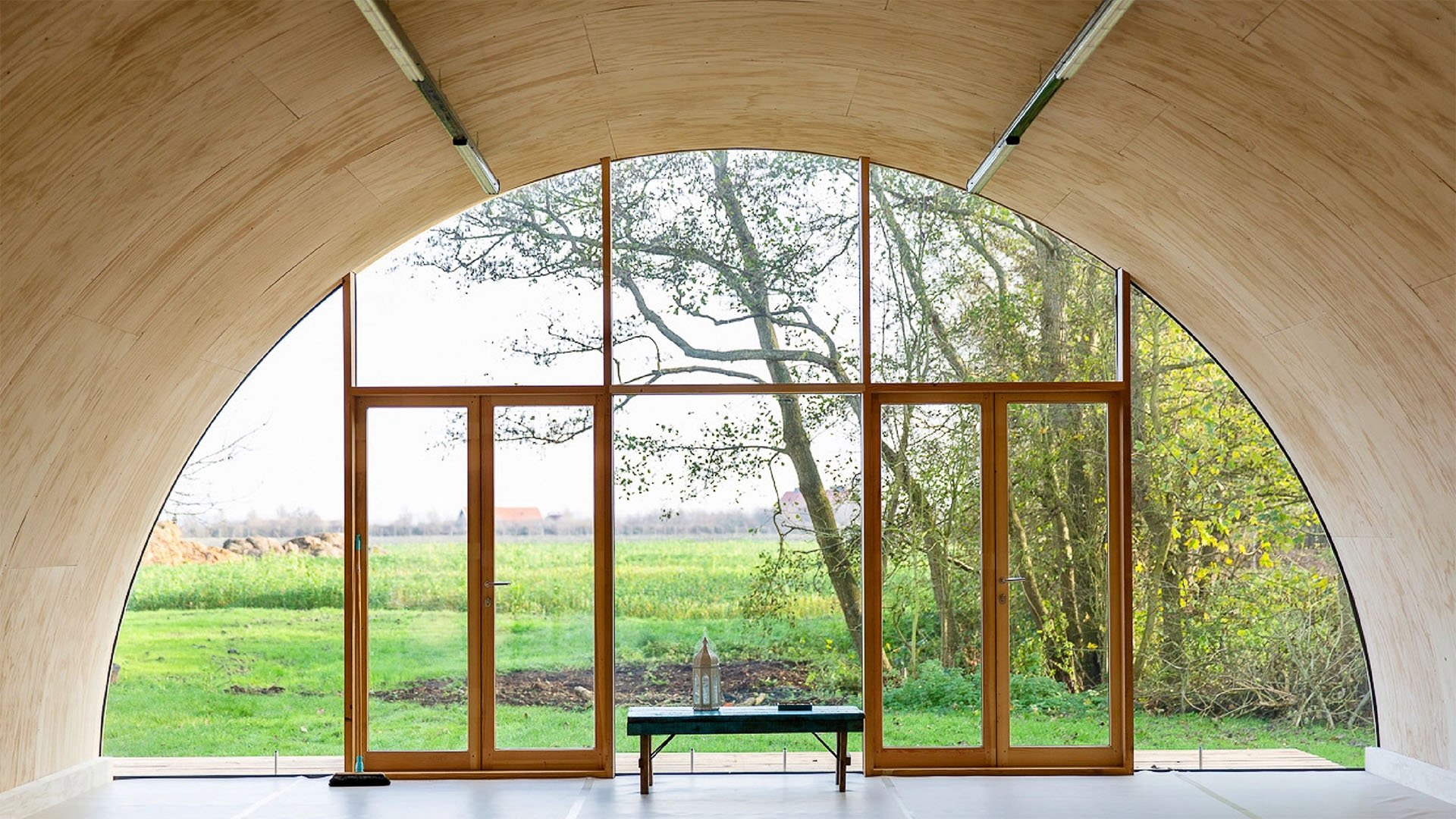 - Verwarmde ruimte van 12,5 bij 7 meter met houten vloer, openslaande deuren en uitzicht op de landerijen.